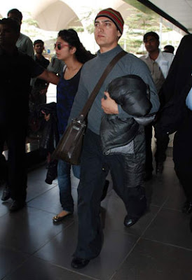 with his Wife Kiran Rao at Mumbai Airport comming back from LA to India on Aamir Khan's Father's Funeral.